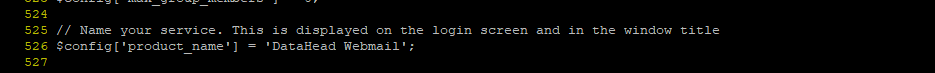# vi config/config.inc.php$config['support_url'] = 'https://datahead.biz/support/'; $config['product_name'] = 'DataHead Webmail';# cd /usr/local/cwpsrv/var/services/roundcube/config